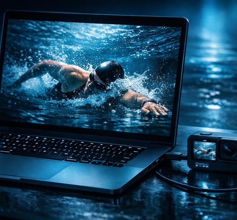 Underwater camera captures every detail of your movement in 4K resolution for precise analysis.
